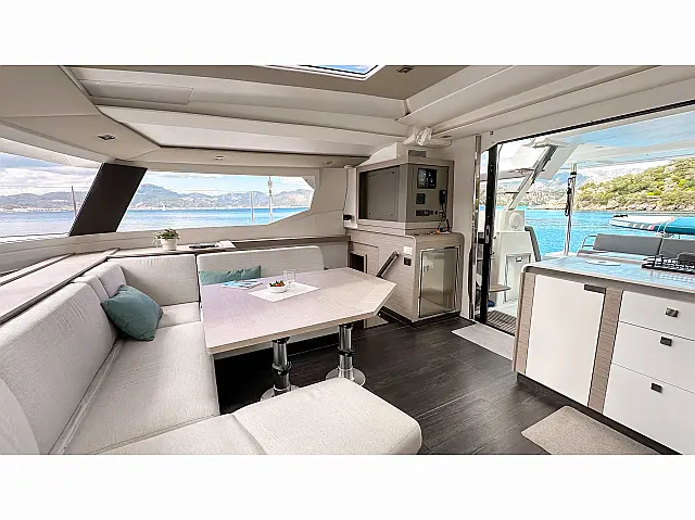Radio-CD player, Oprema za ronjenje na dah, Stand up paddle Generator, Pomoćni čamac, Aparat za kavu, Inverter, Klima, Električna vitla, Desalinizator, Hladnjak, Solarni paneli, Jastuci u kokpitu, Zvučnici u kokpitu, Wi-Fi i internet, Električni WC, Flybridge, Bimini, Ledomat, Vanbrodski motor Ploter karata u kokpitu, Autopilot, Ploter karata