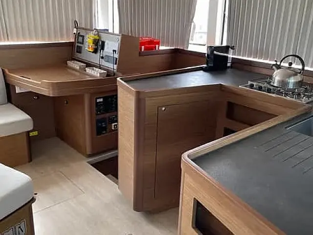 Ploter karata u kokpitu, Autopilot Generator, Bimini, Pomoćni čamac, Solarni paneli, Inverter, Desalinizator, Hladnjak, Klima, Grijanje, Aparat za kavu